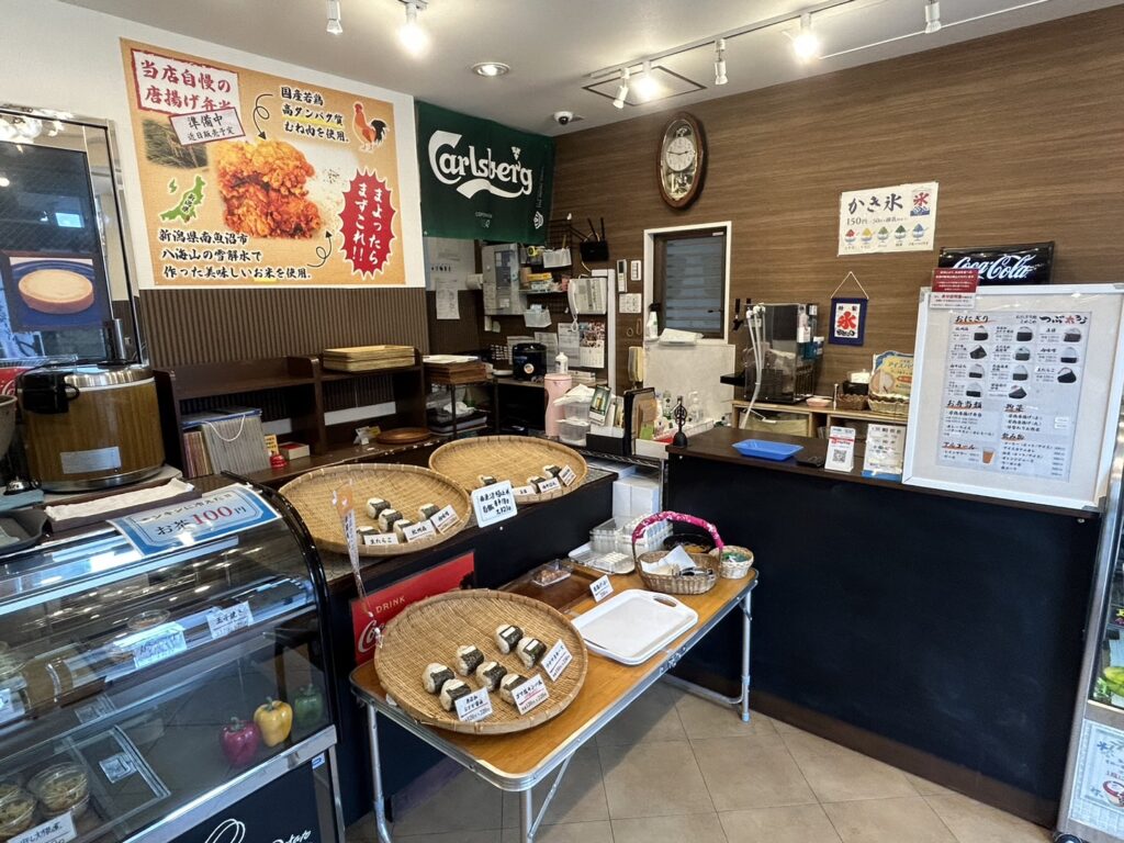 具にこだわり尽くした各種おにぎりとから揚げをメインで販売しているテイクアウト専門店です。2階にイートインスペースも併設しております。